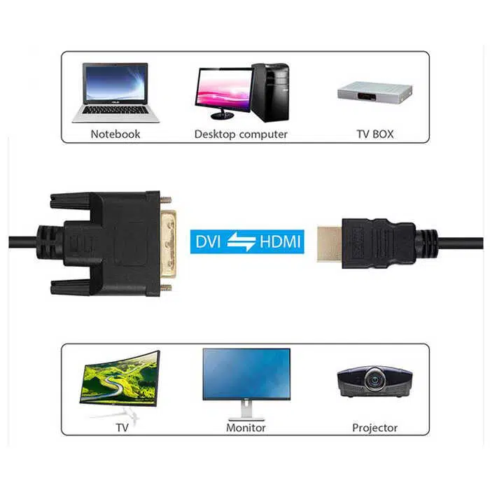 1.8 Metre HDMI to DVI 24+1 Kablo, HDMI ve DVI bağlantı noktaları arasındaki görüntü aktarımını yüksek kaliteyle gerçekleştirir. Altın kaplama uçları sayesinde sinyal kaybını en aza indirir ve uzun ömürlü kullanım sunar. Monitör, bilgisayar, projeksiyon cihazı, LED/LCD TV gibi birçok cihaz arasında uyumlu çalışır.