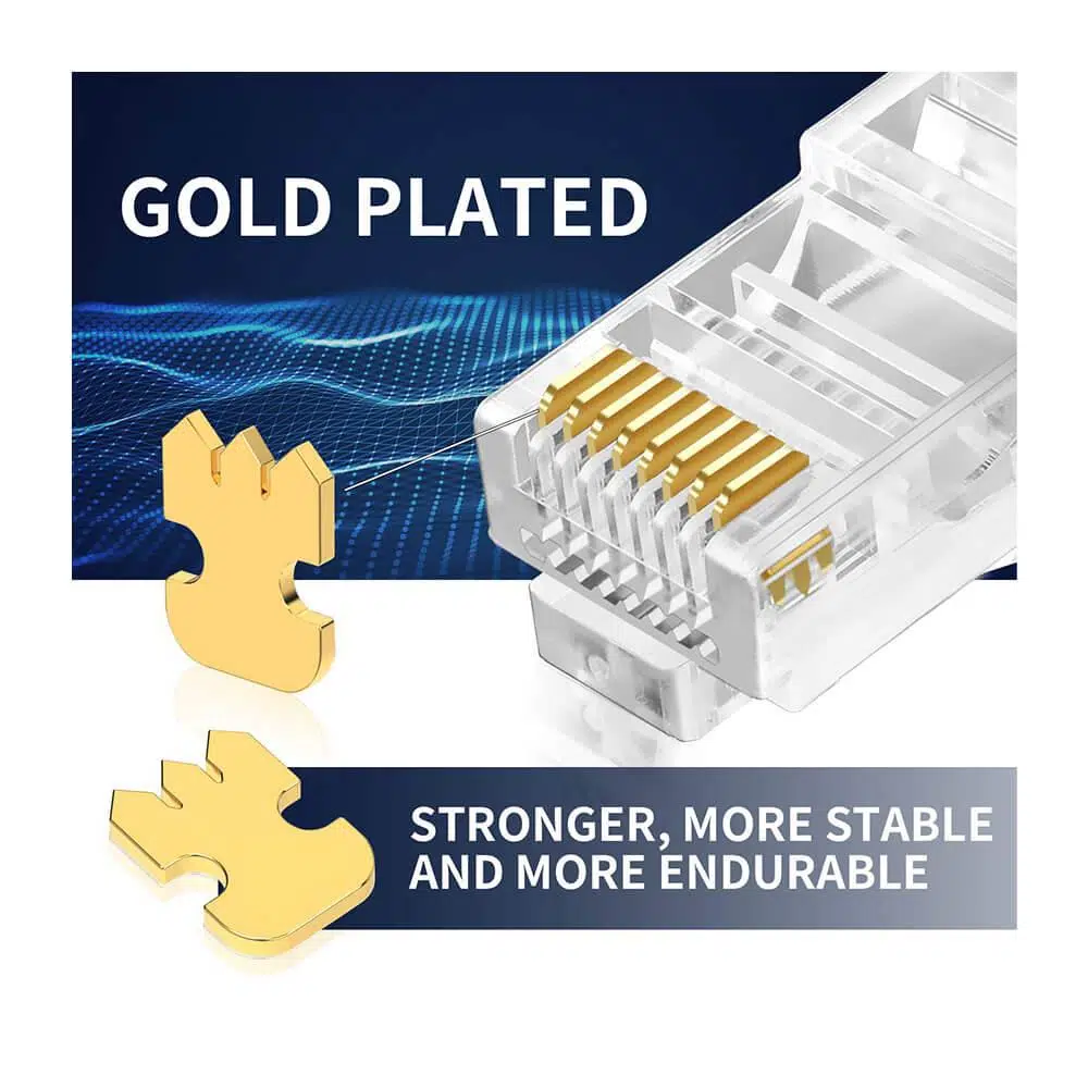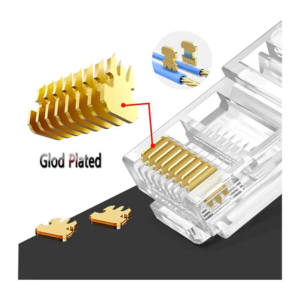 Cat6 Uyumlu: Cat6 RJ45 pass-through 3µm konnektörler, Cat6 Ethernet kablolarıyla uyumludur. Cat6 kablolar, daha yüksek bant genişliği ve daha iyi performans sağlamak için tasarlanmıştır.