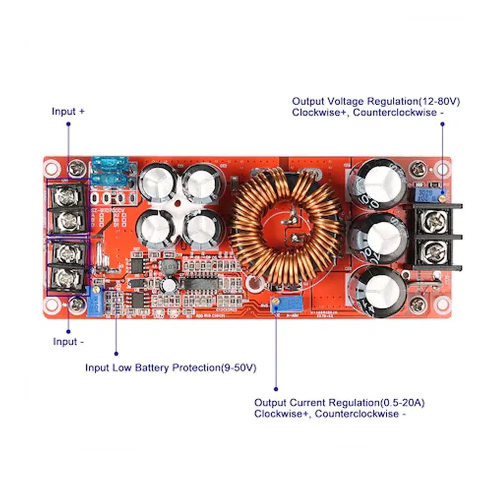 | Etiketler | 1200W Dc-Dc Voltaj Gerilim Yükseltici 20A 8-60V To 12-83V |