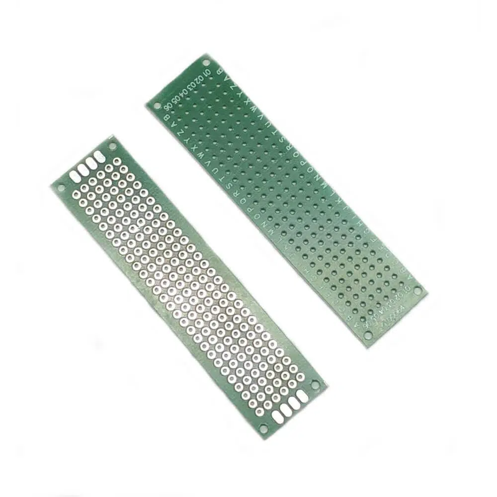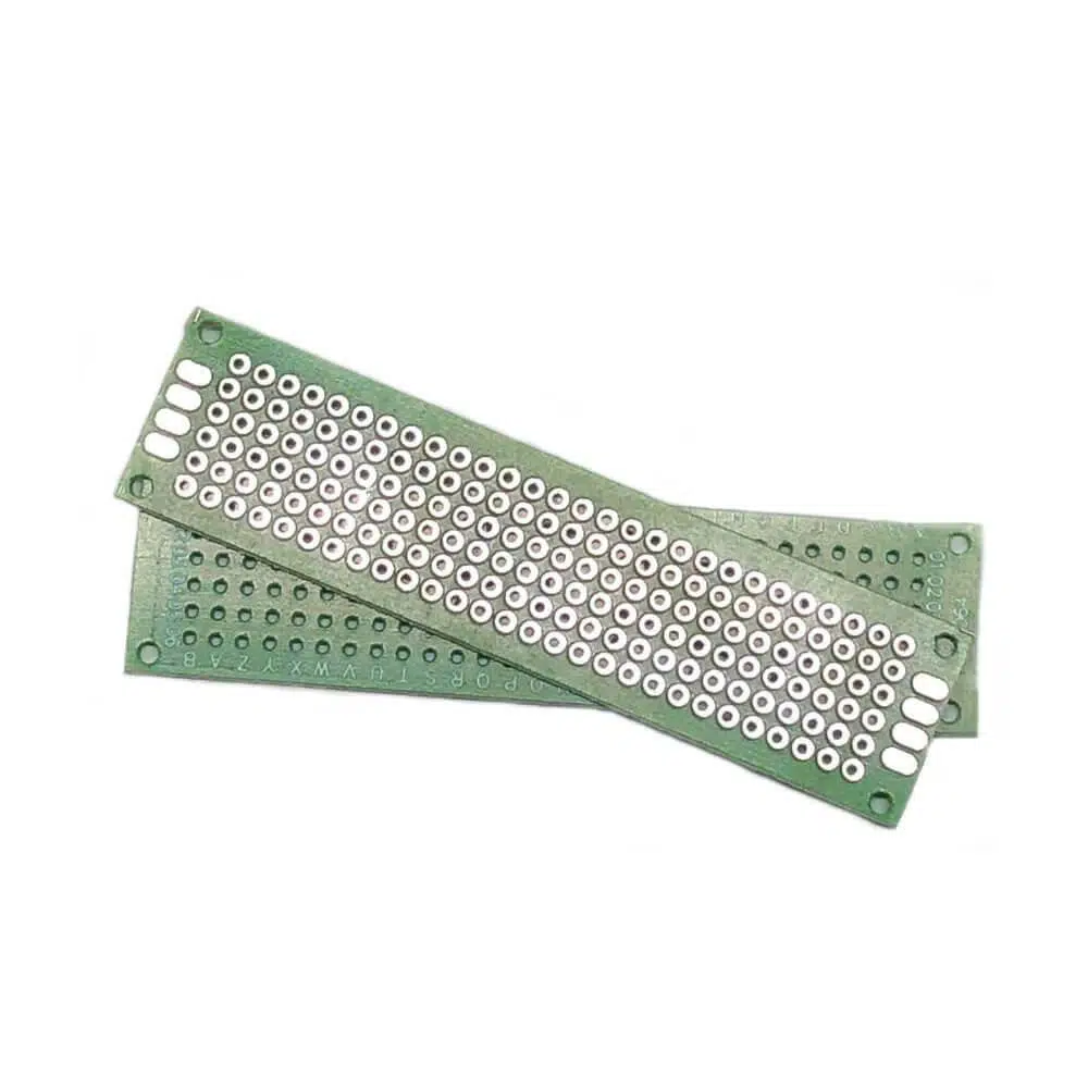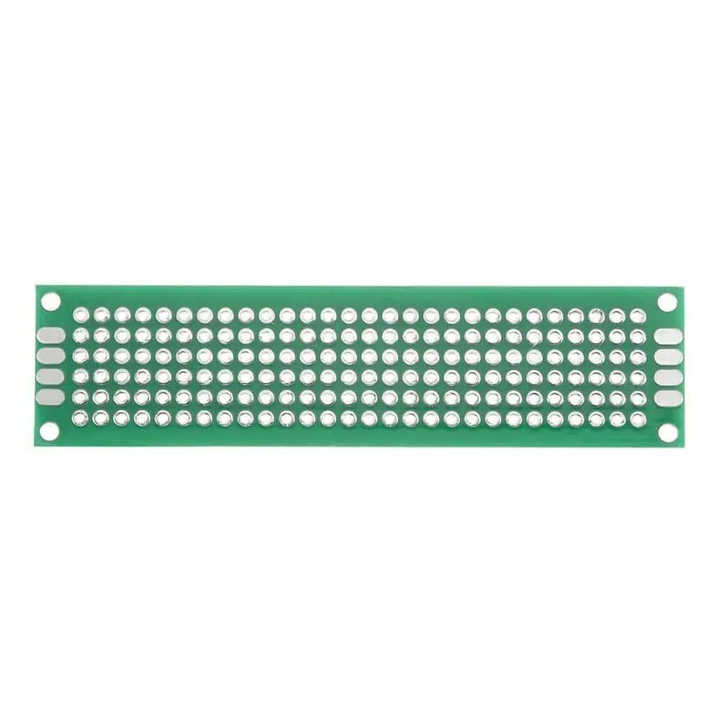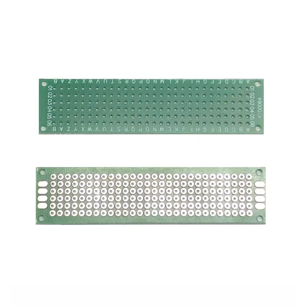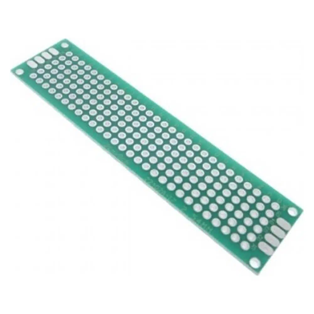 2x8 cm boyutunda delikli devre tahtası, elektronik bileşenleri yerleştirmek ve lehimleme yapmak için kullanılan bir tür prototipleme tahtasıdır.