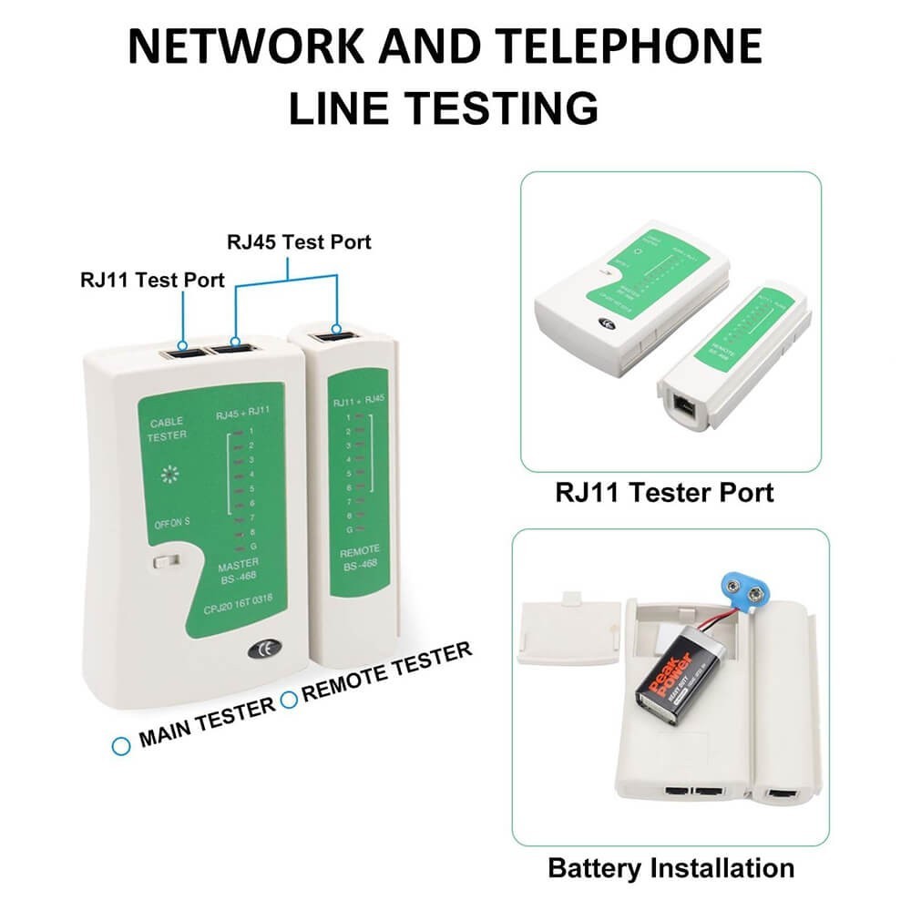 - Ethernet, telefon ve ADSL kablolarınızı hızlı ve doğru şekilde test etmenizi sağlar.