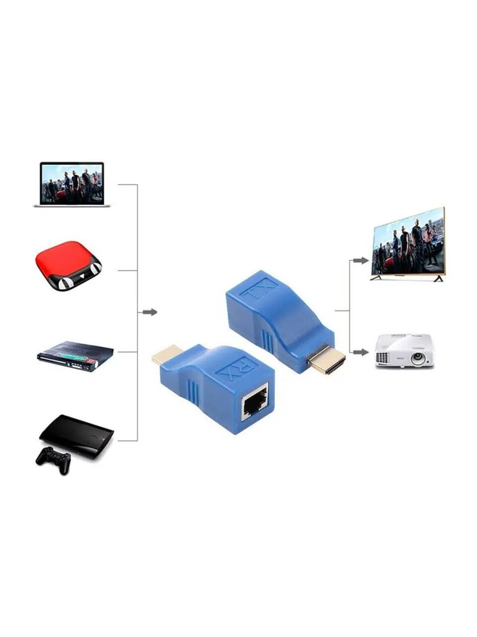 30 Metre HDMI Extender – RJ45 (Cat5e/6) ile HDMI Sinyal Uzatma (4K/1080p Destekli)