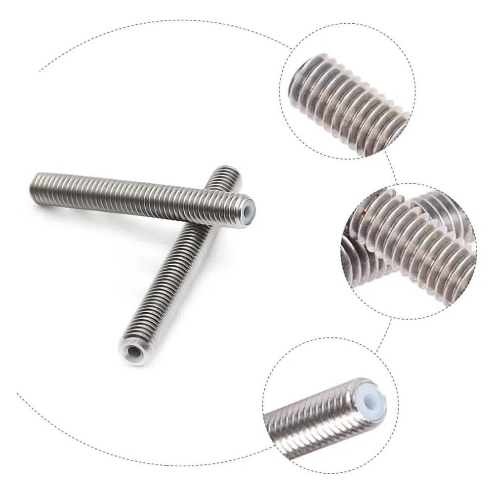 Paslanmaz çelik vida parçası ve içindeki ptfe sleeve tüpten oluşur, filamentin akıcı geçişini sağlar, dayanıklı ve uzun ömürlüdür.