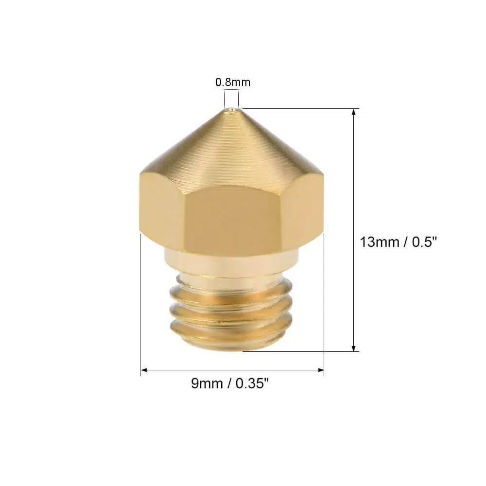Nozzle'lar, farklı çaplarda ve malzemelerde gelir. Örneğin, farklı baskı hassasiyetleri veya farklı malzemelerin kullanılmasını sağlamak için değişik çapta nozzle'lar kullanılabilir.