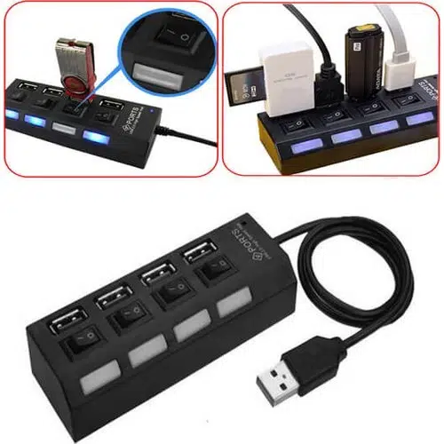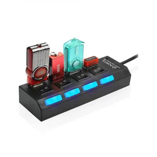 1 Adet 4 Port USB Çoklayıcı Hub (IC Chipli, Mavi Işıklı, Her Port İçin On/Off Anahtar)