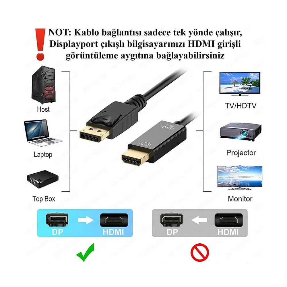 | Etiketler | 4K 60Hz HDR Displayport to Hdmi Çevirici Kablo - Display Port Dp to HDMI Kablosu - 5m |