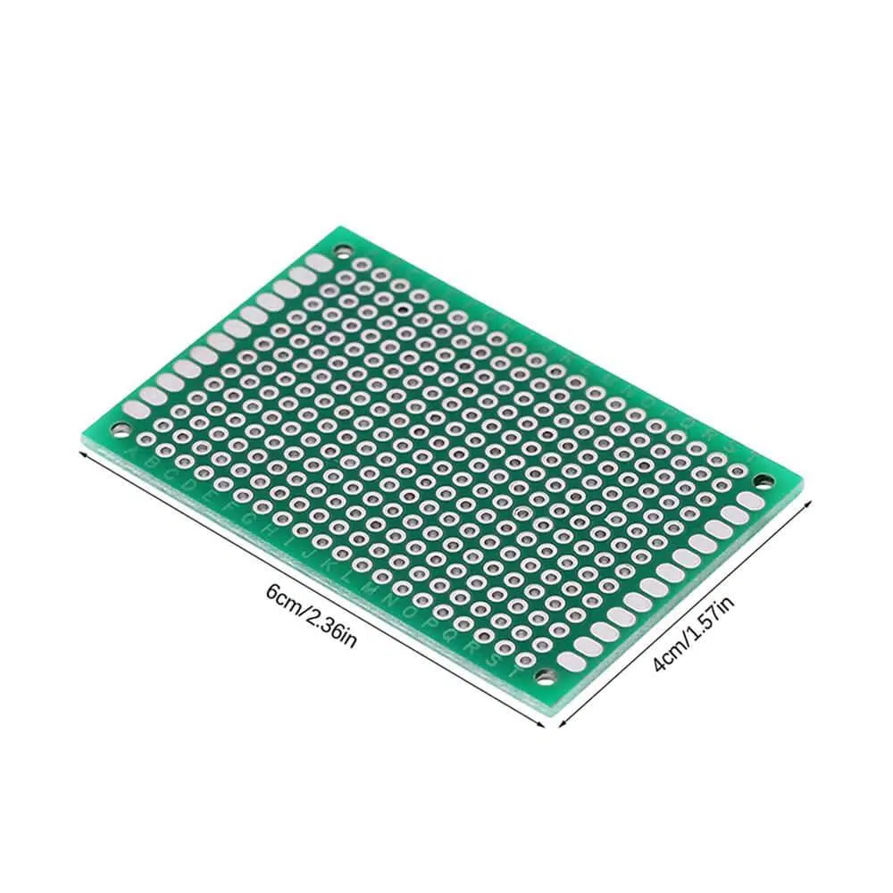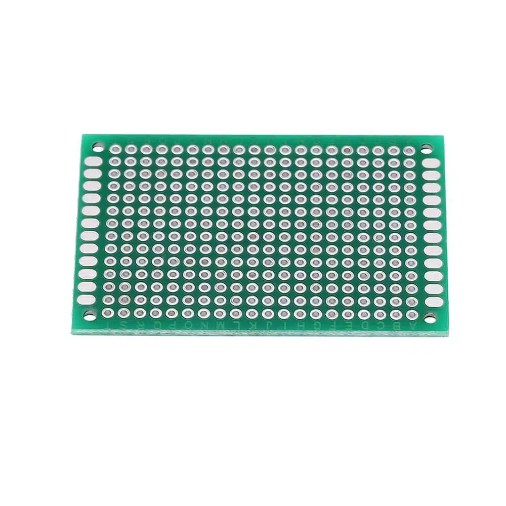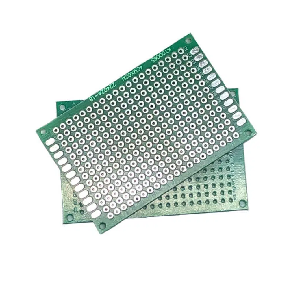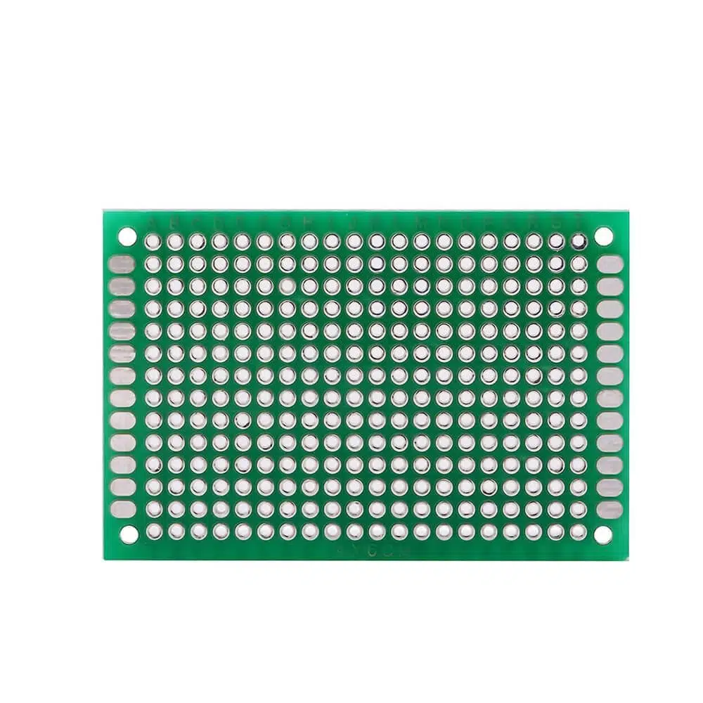 4x6 cm boyutunda delikli devre tahtası, elektronik bileşenleri yerleştirmek ve lehimleme yapmak için kullanılan bir tür prototipleme tahtasıdır.