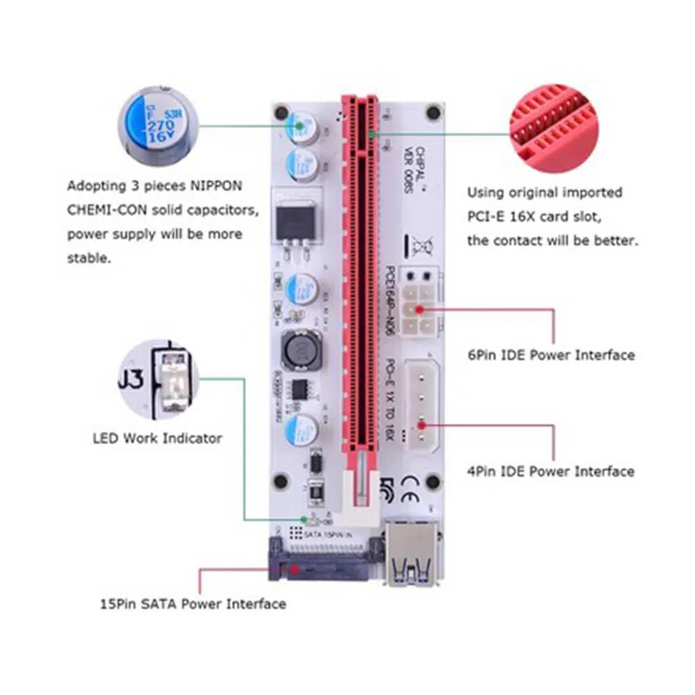| Etiketler | 6 Adet - VER008S PCI-E Express 1X To 16X USB 3.0 Riser Kart Uzatıcı Yükseltici - 3in1 Güç |