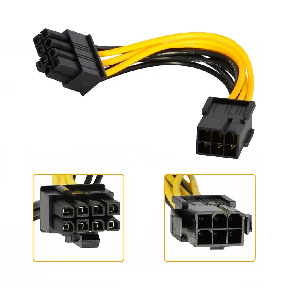 Ekran Kartı Gücü İçin Pratik Çözüm 6 Pin to 8 Pin (6+2) PCIe güç kablosu, güç kaynağınızda 8 pin çıkışı olmayan durumlarda ekran kartınıza (GPU) sorunsuz enerji sağlamanızı sağlar. Özellikle yeni nesil ekran kartları ve mining rig sistemleri için ideal bir bağlantı aparatıdır.