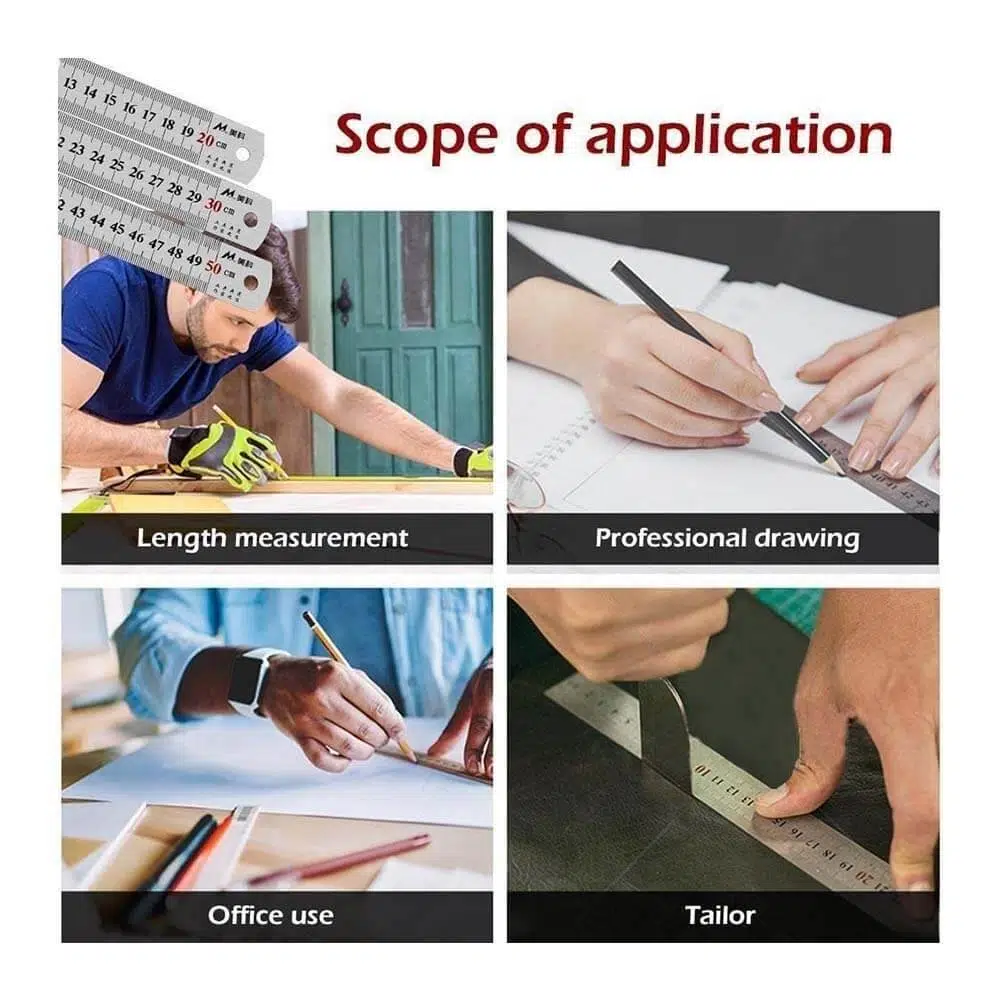 Uzun Ömürlü Kullanım:Paslanmaz çelik malzemesi, cetvelin dayanıklılığını artırır ve uzun süreli kullanım sağlar.