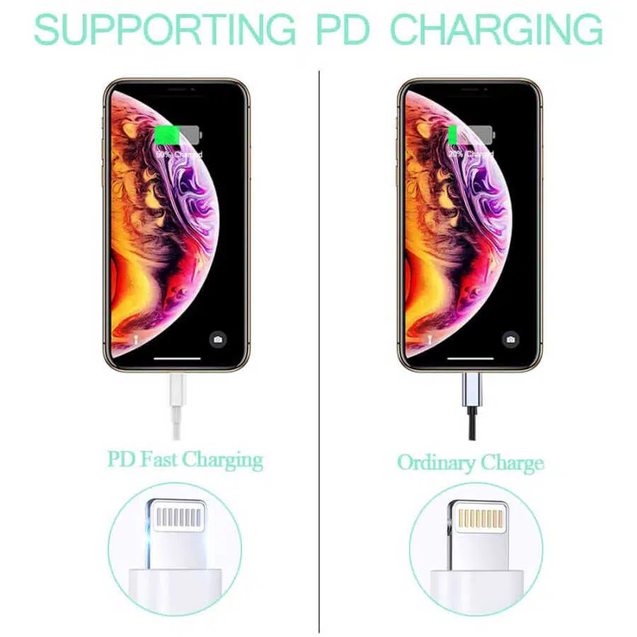 Bu kabloyu, iOS aygıtınızı şarj etmek için Apple 29 W, 30 W, 61 W veya 87 W Type-C Güç Adaptörü’nüzle de kullanabilir ve hatta dilerseniz iPhone 8, iPhone 8 Plus, iPhone X, iPhone XS, iPhone XS Max, iPhone XR, iPhone 11 Pro ve Pro Max veya belirli iPad Pro modelleriyle kullanarak hızlı şarj özelliğinden yararlanabilirsiniz.
