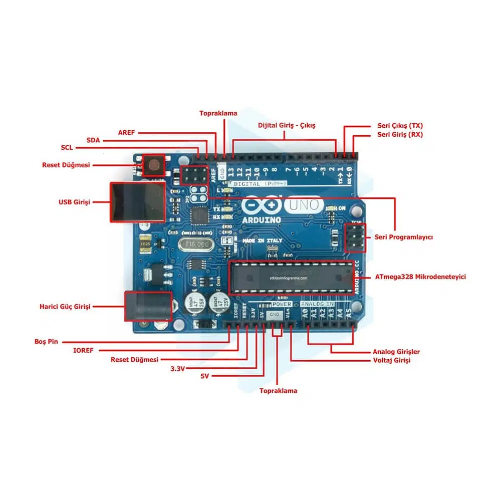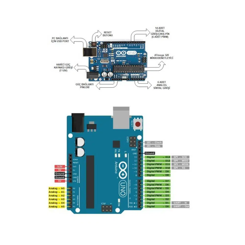 - Analog Pinler (A0-A5): Sensör ölçümleri & analog veri giriş-çıkış
