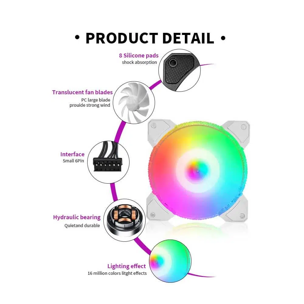 RGB Aydınlatma: Fan, çok renkli LED'lerle donatılmıştır ve farklı renklerde ışıklandırma efektleri üretebilir. Kristal elmas yüzeyi, ışığın yansımasını artırarak daha göz alıcı bir aydınlatma sağlar.