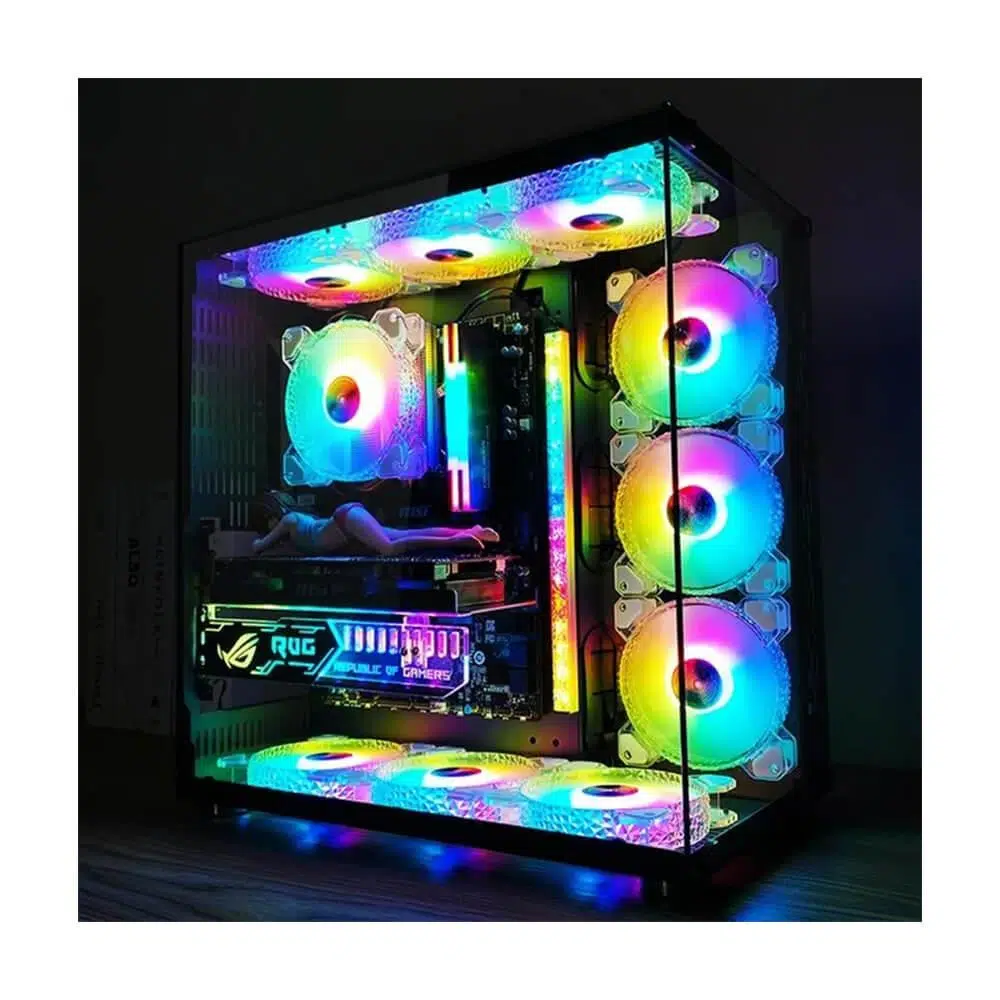 Kristal Elmas Yüzey: Fanın öne çıkan özelliklerinden biri, kristal elmas yüzeyli tasarımıdır. Bu tasarım, fanın yüzeyine parıltılı ve benzersiz bir dokunuş katar, bilgisayar kasasına göz alıcı bir görünüm sağlar.