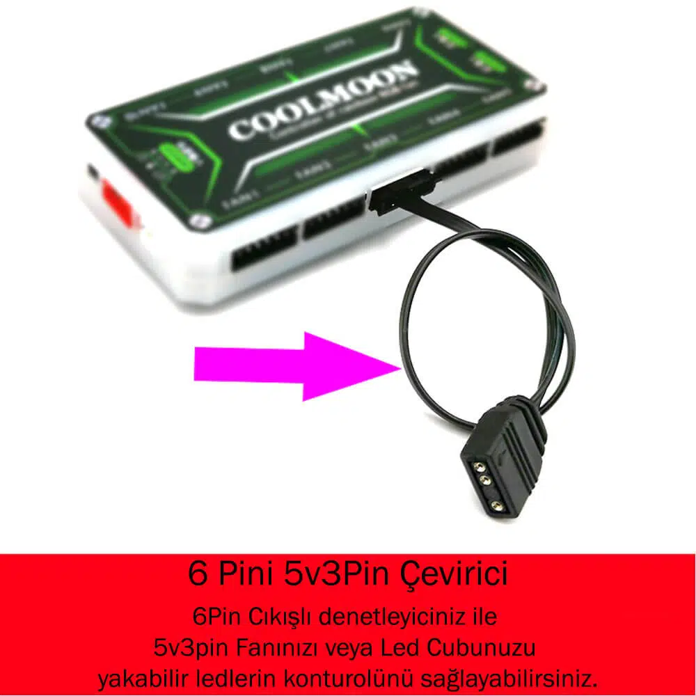 | Etiketler | CoolMoon 6 Pin to 5v3Pin Çevirici ARGB Fan Çevirici Kablo |