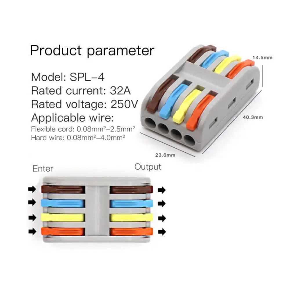 Bu SPL-4 kablo konnektör, 4’lü bağlantı sistemiyle elektrik projelerinde kablolama işini basitleştirir.