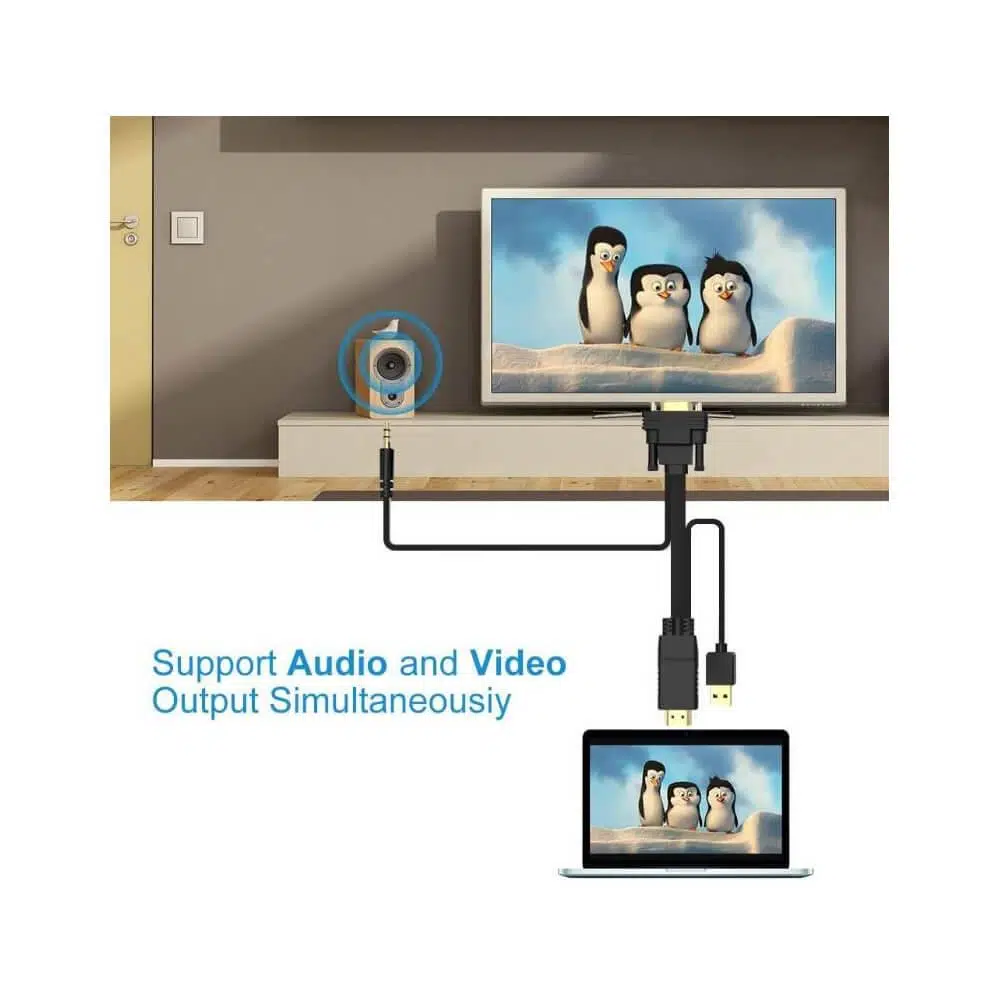 3.5mm Ses Kablosu: Bazı HDMI to VGA kabloları, HDMI sinyali ile birlikte ses aktarımı sağlamak için bir 3.5mm ses kablosuna sahiptir. Bu, HDMI sinyali üzerinden ses alamayan eski VGA monitörlerinin veya projektörlerinin ses çıkışını sağlar. Bu ses kablosunu, HDMI kaynağınızın ses çıkışına bağlayarak kullanabilirsiniz.