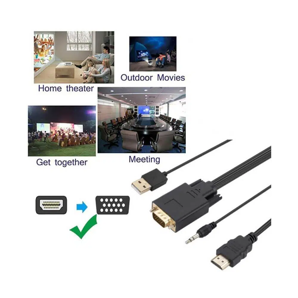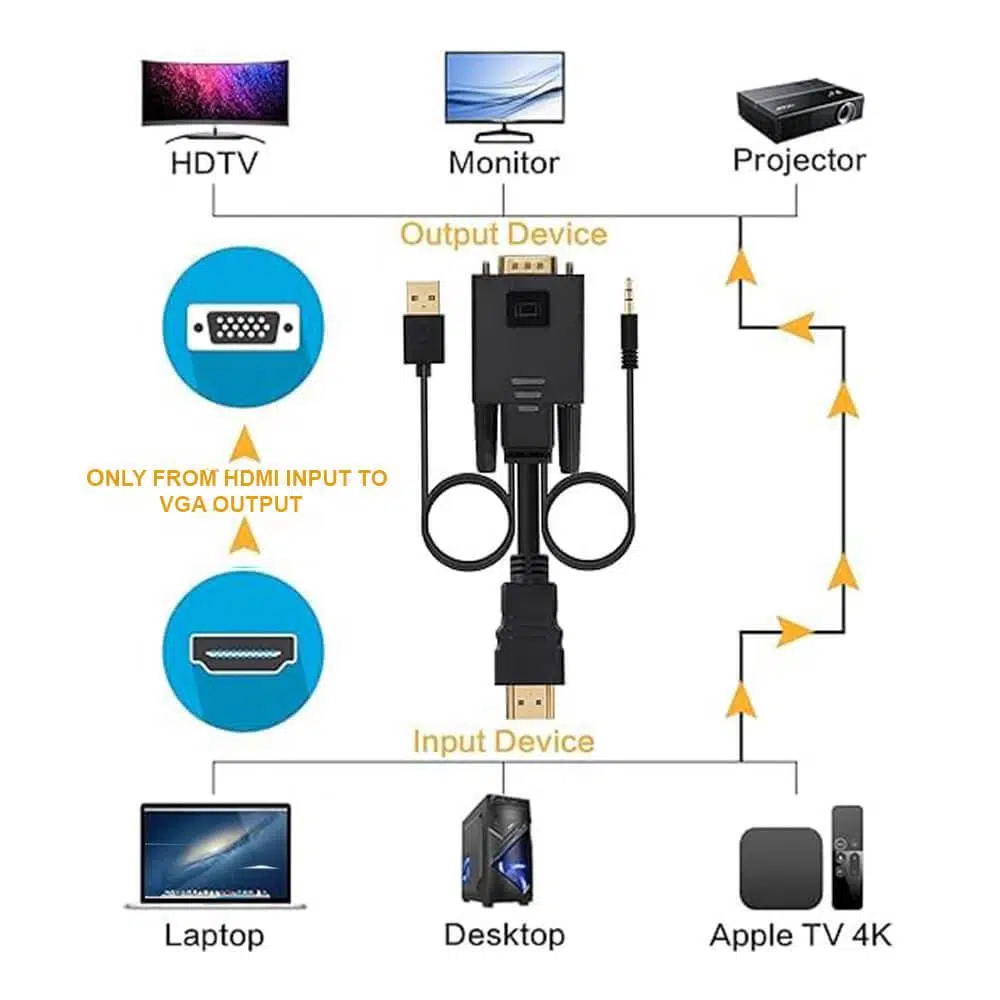 HDMI to VGA Dönüşümü: Bu kablo, HDMI sinyalini VGA formatına dönüştürür. Bu sayede, HDMI çıkışına sahip bir cihazı, yalnızca VGA girişine sahip bir monitör veya projektöre bağlayabilirsiniz.