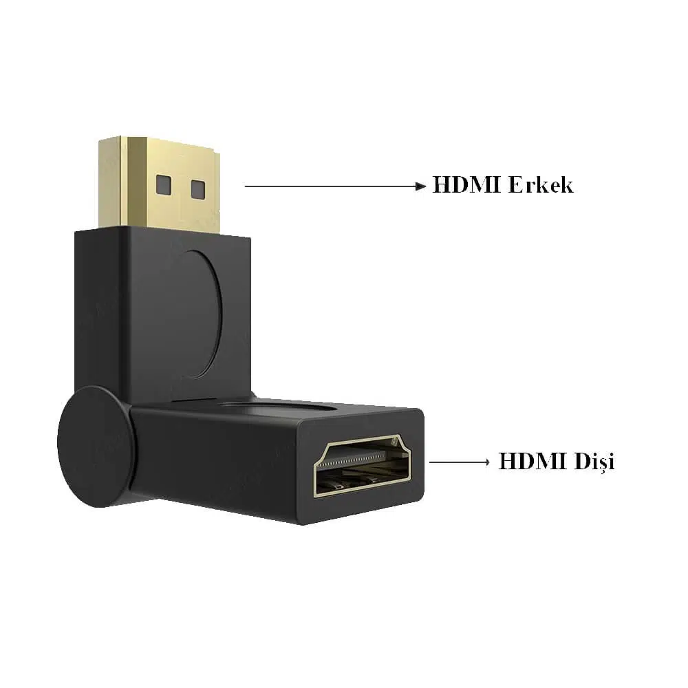 HDMI Erkek - HDMI Dişi 90°-180° Dönüştürücü Adaptör