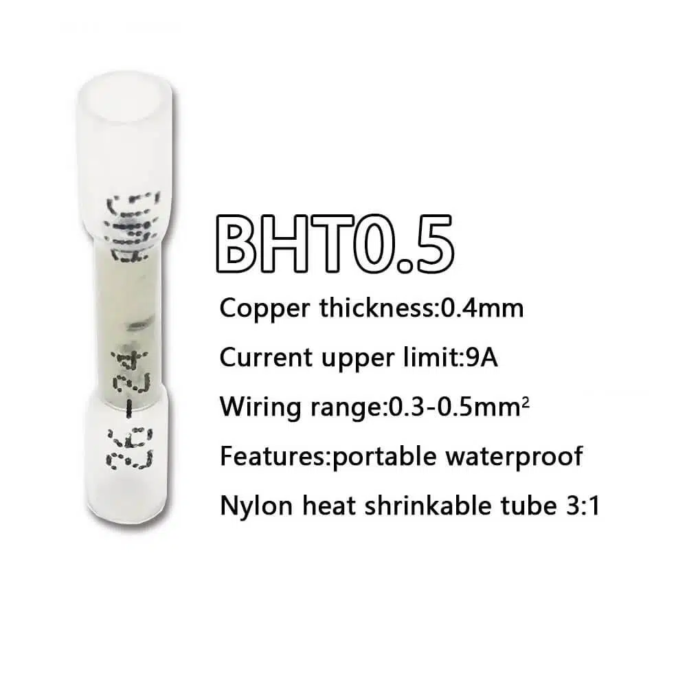 Naylon Isıyla Daralan Tüp 3:1: Bu, konnektörle birlikte kullanılan ısıyla daralan bir tüp hakkında bilgi verir. 3:1 oran, tüpün başlangıç çapının (dar olmayan durumunda) son çapının üç katı olduğunu belirtir. Bu tür tüpler, bağlantıyı korumak ve izole etmek için kullanılır. Naylon malzeme, dayanıklılık ve su geçirmezlik gibi özellikler sunabilir.