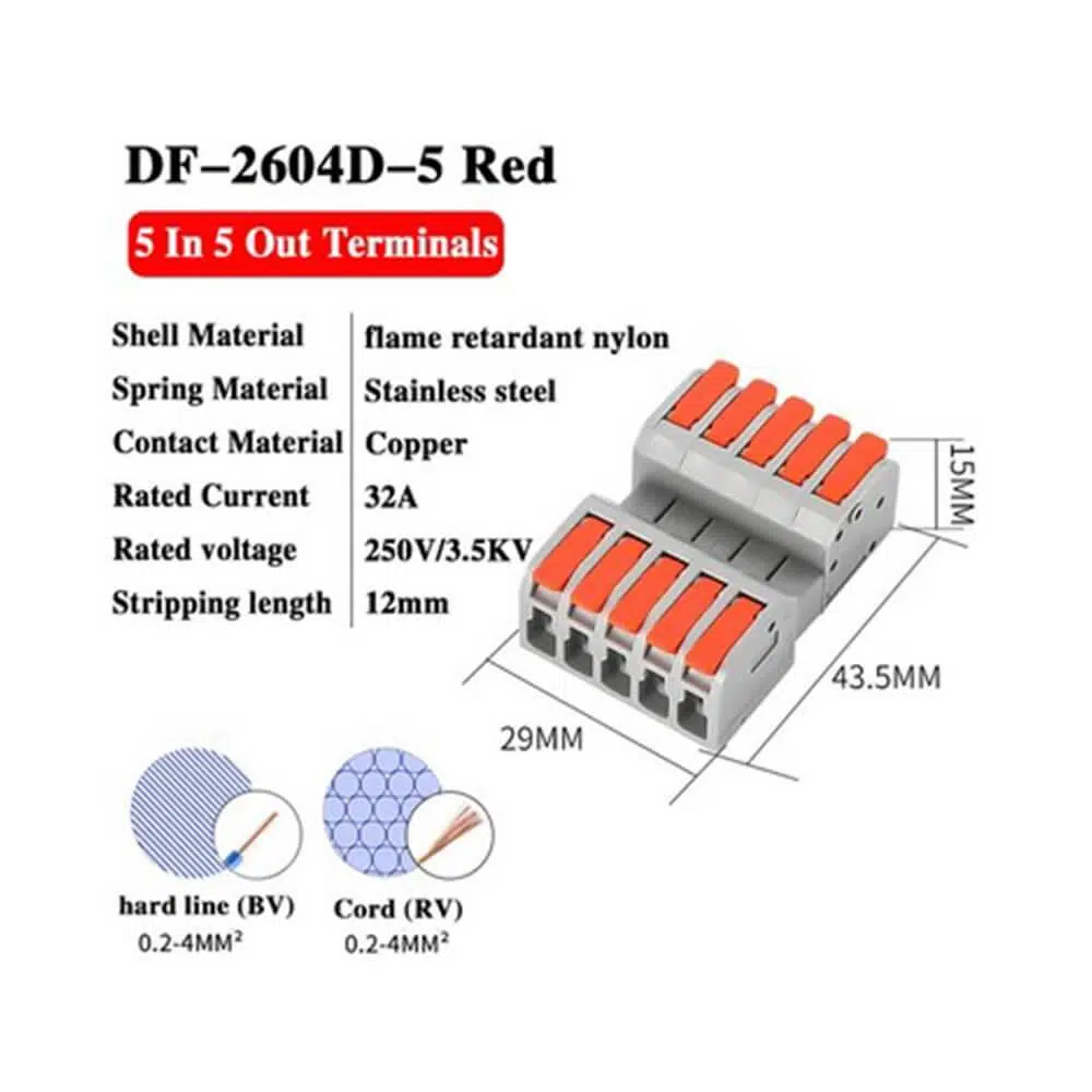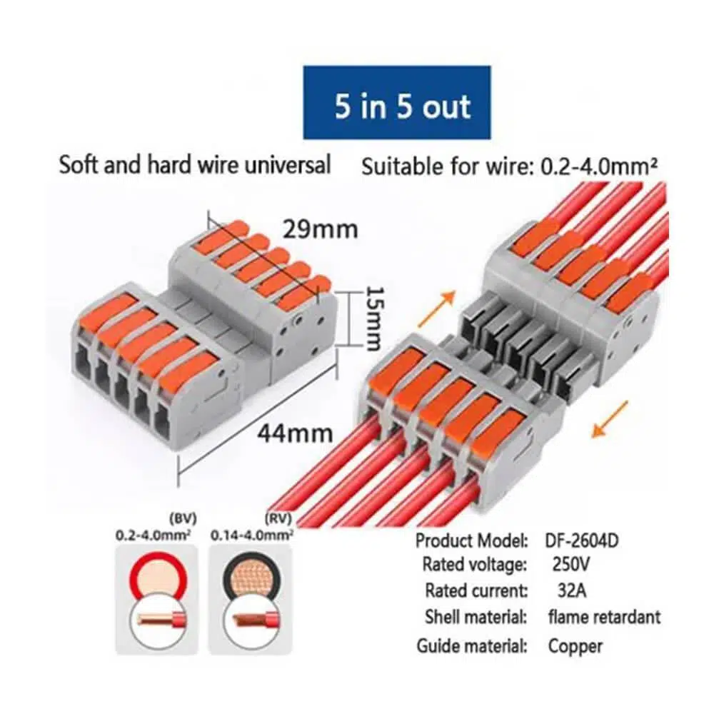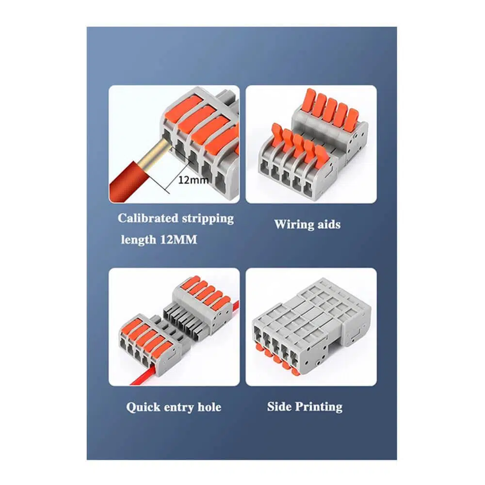 Hızlı kablo ekleme konnektörleri, elektrik bağlantılarını hızlı, güvenli ve verimli bir şekilde gerçekleştirmenin ideal yoludur. Anma gerilimi 250V ve anma akımı 32A olan bu konnektörler, geniş bir uygulama yelpazesine sahiptir.
