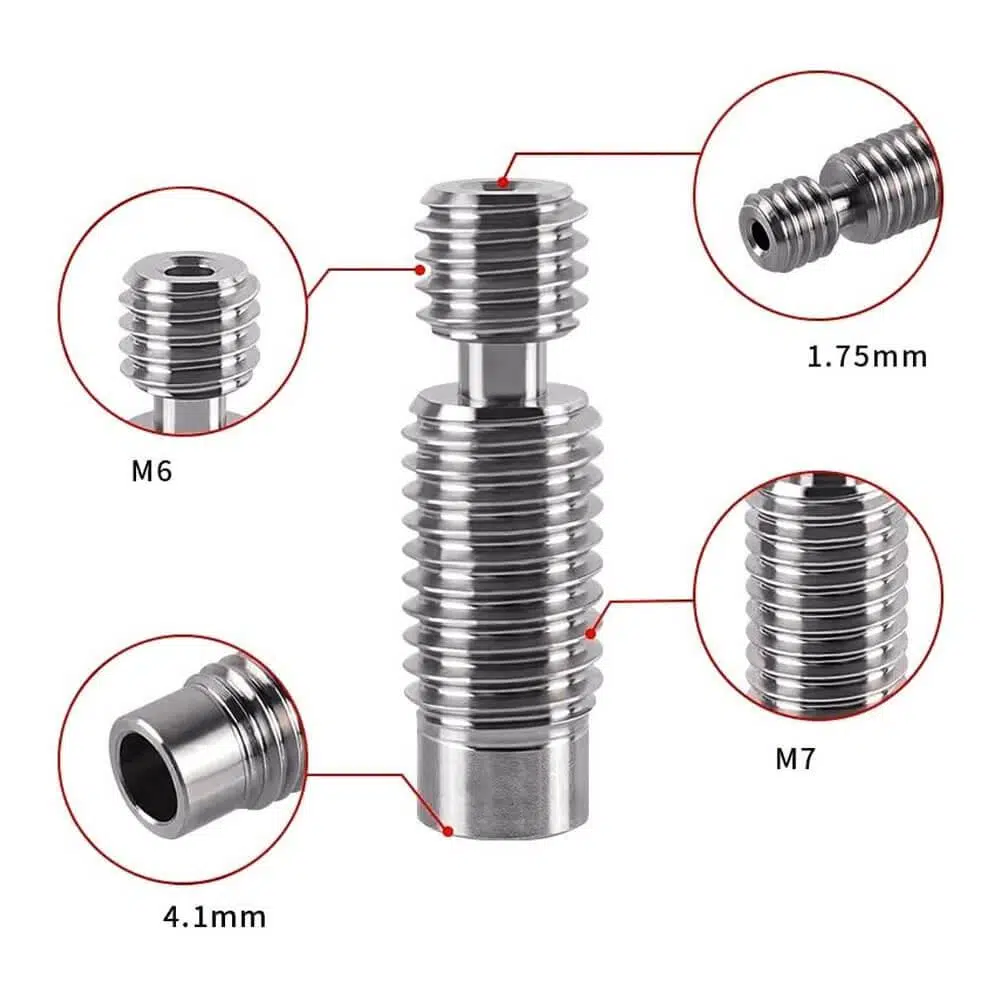 E3D V6 hotendlerle uyumlu M7x22mm boyutlarında bareldir. Soğutucu blok tarafı M7(7mm)'dir. Barelin toplam uzunluğu 22mm'dir.