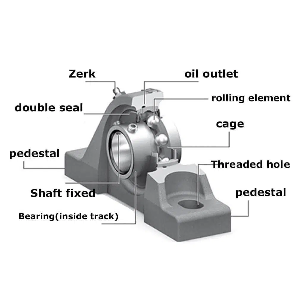 KP08, bir yataklı bloğu temsil eder ve yuvarlanan elemanlar (genellikle bilyalar) kullanarak dönme veya kayma hareketini kolaylaştırır.