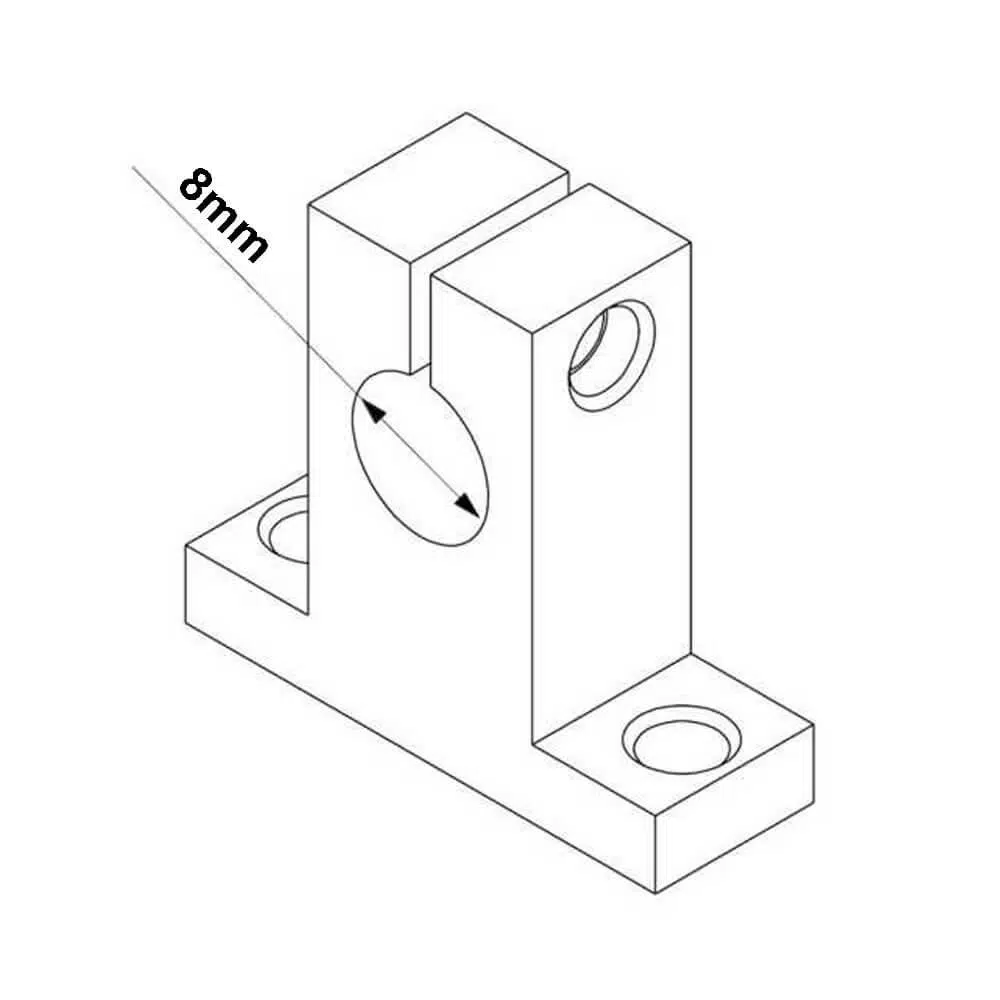 SK8 mil tutucu, 3D yazıcı, CNC vb. robotik ve otomasyon projelerinde mil tutmak için özel olarak tasarlanmıştır. Alüminyum alaşımdan yapılmıştır. İç çapı 8mm dir.