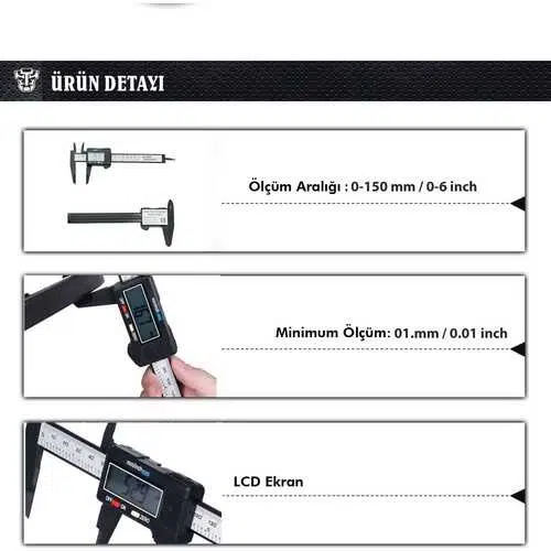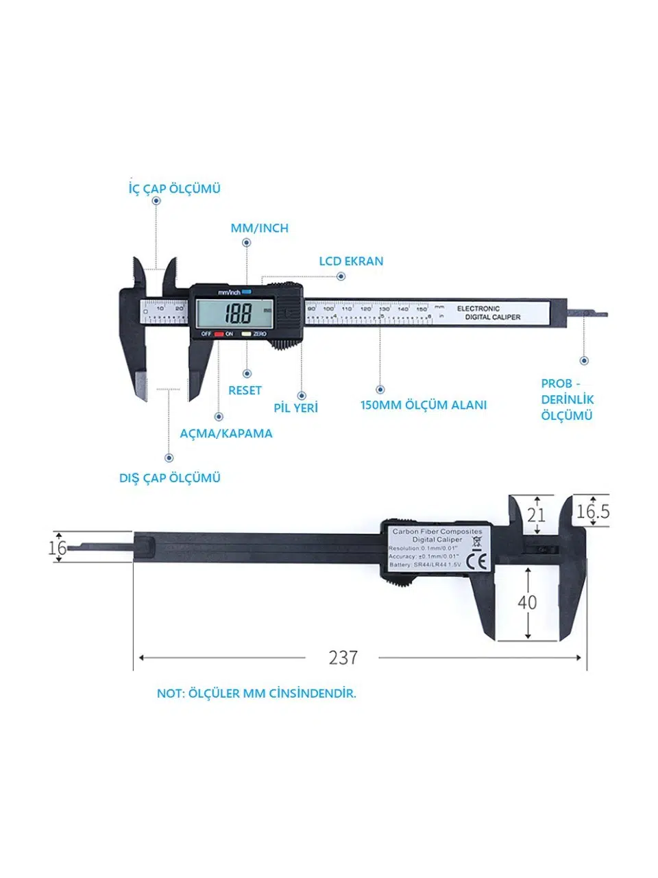 Dijital Karbon Fiber Kumpas – 150mm Hassas Ölçüm Cihazı (Pil Dahil)