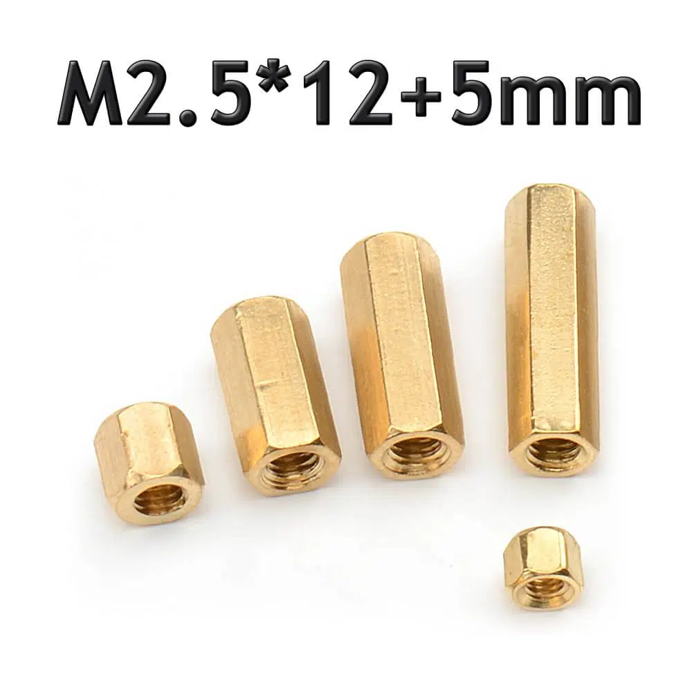 M2.5 x 12mm Pirinç Aralayıcı Distans Dişi - Dişi M2.5*12+5mm