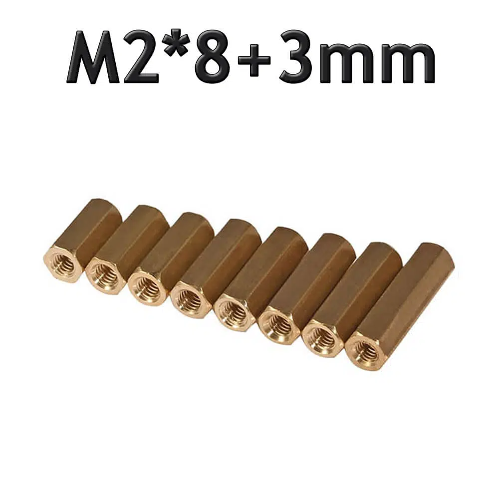 M2 x 8mm Pirinç Aralayıcı Distans Spacer - Dişi - Dişi M2*8+3mm