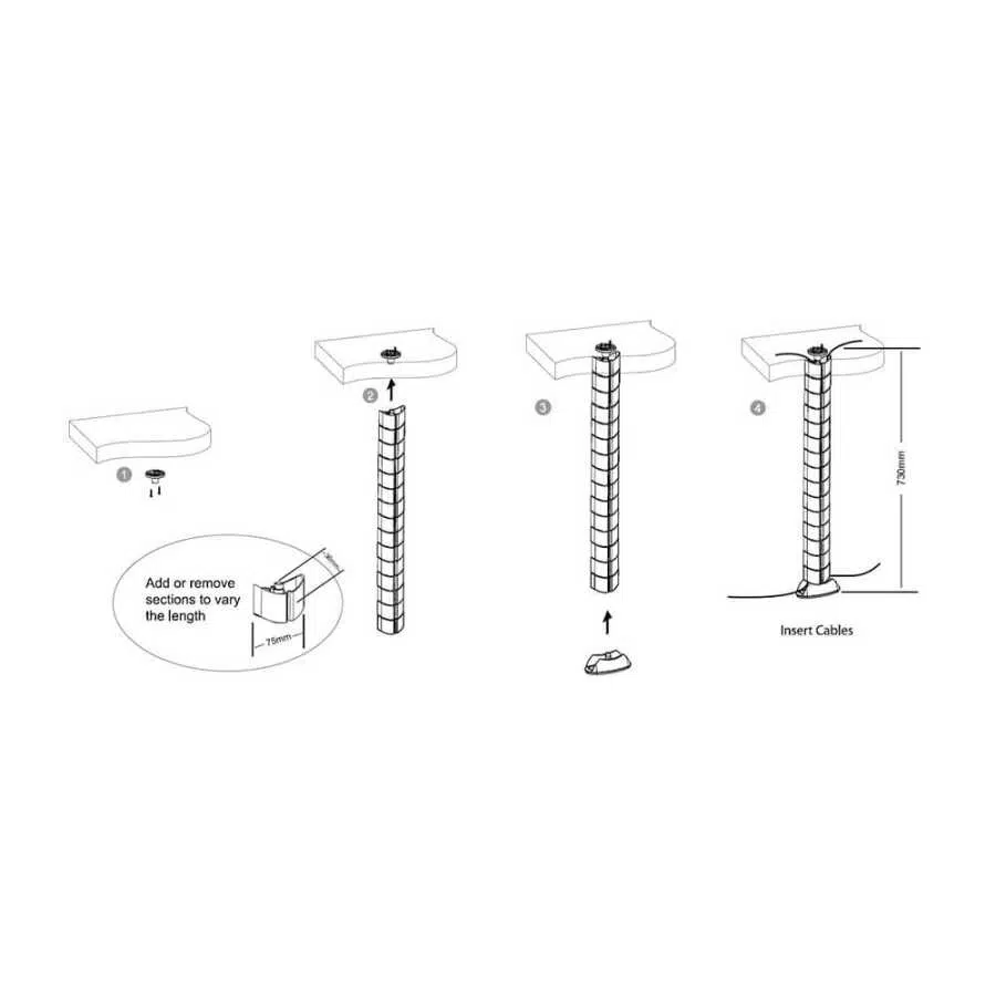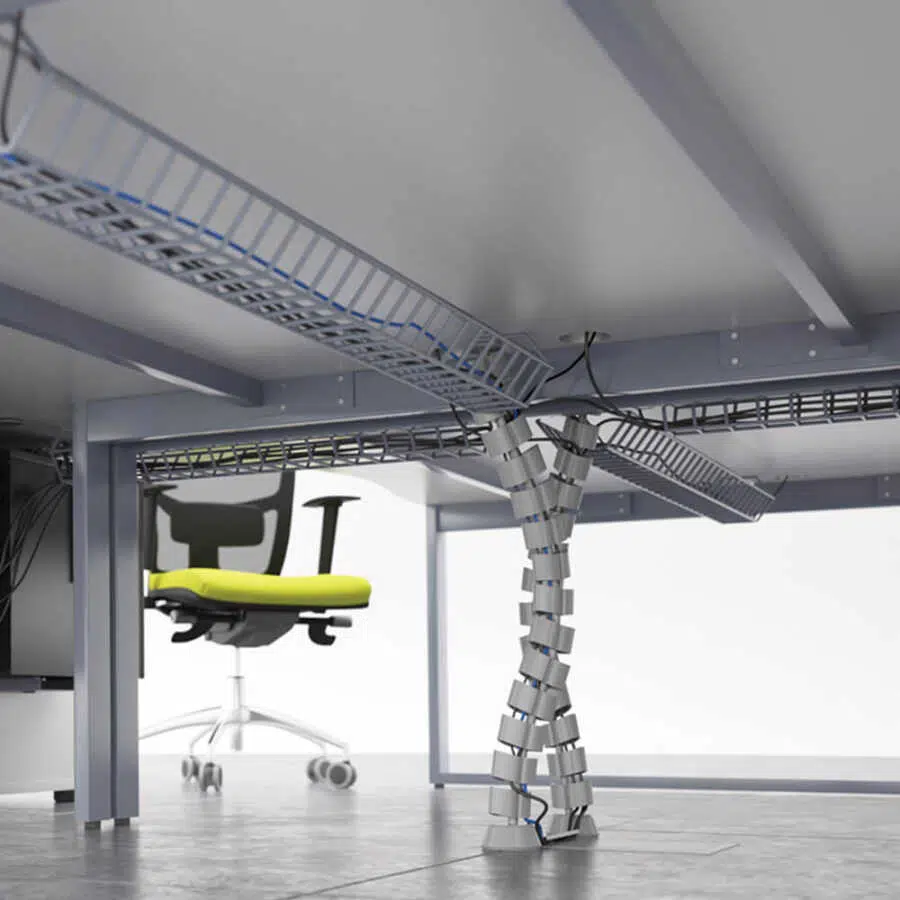 Ofis ve bireysel çalışma ortamlarında kullanılmak üzere zemin ile masaüstü arasında enerji ve kablo düzenleme çözümü için tasarlanmıştır.