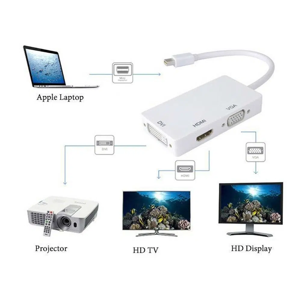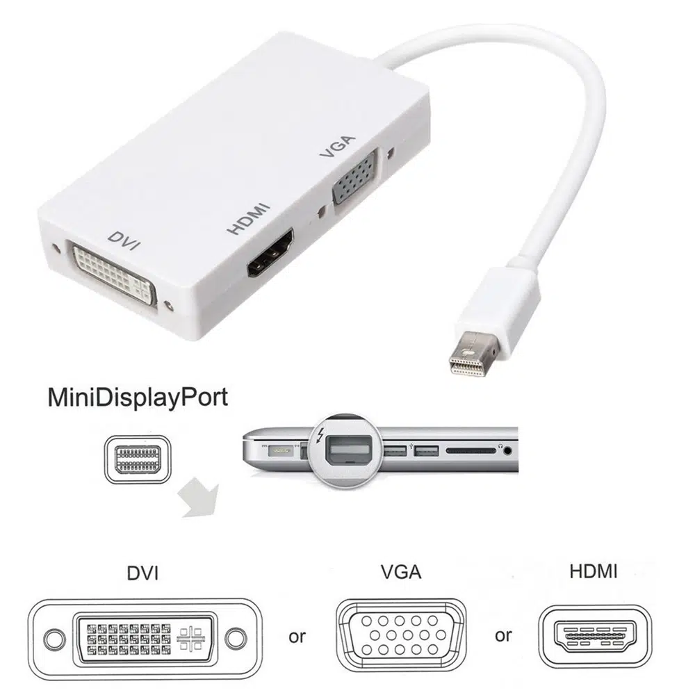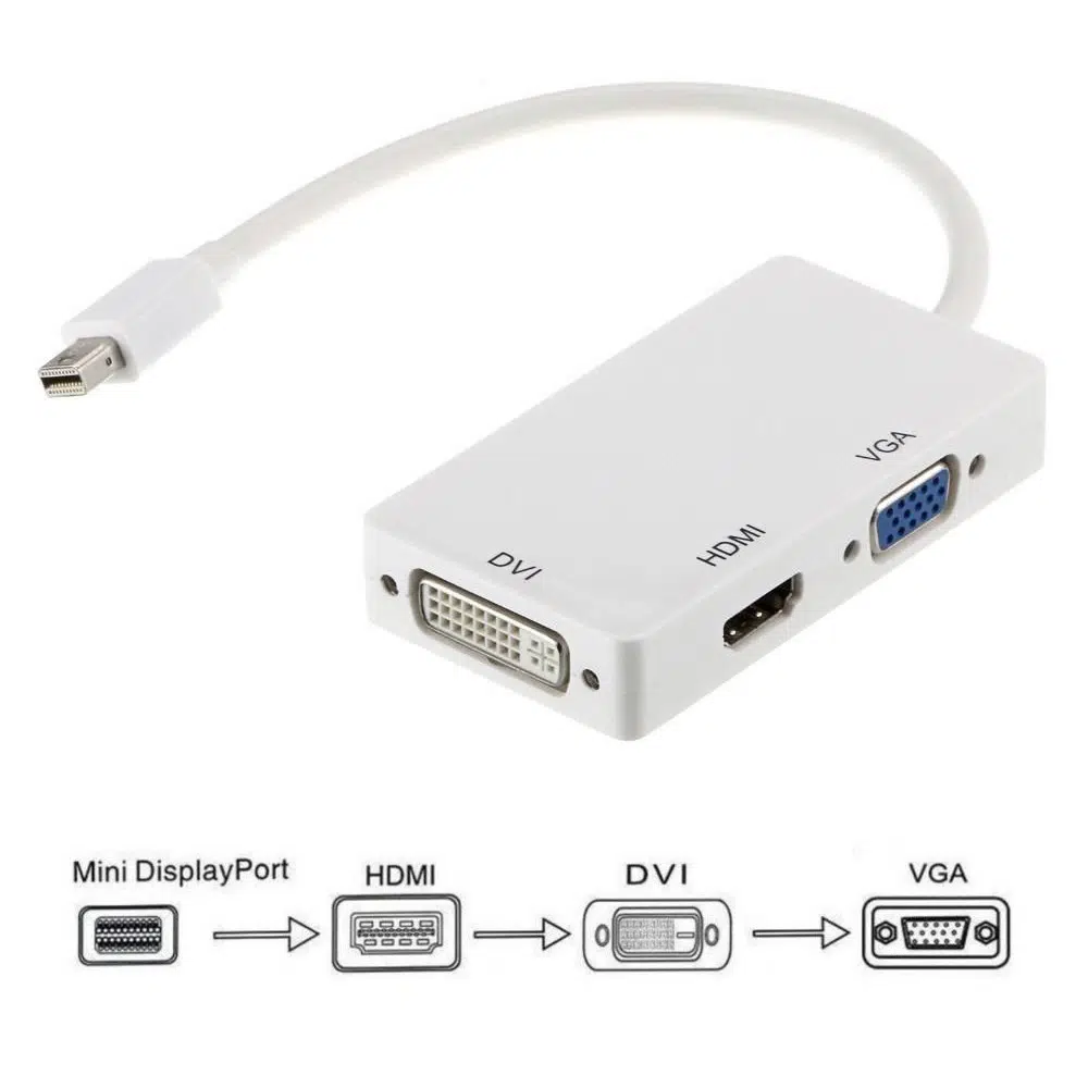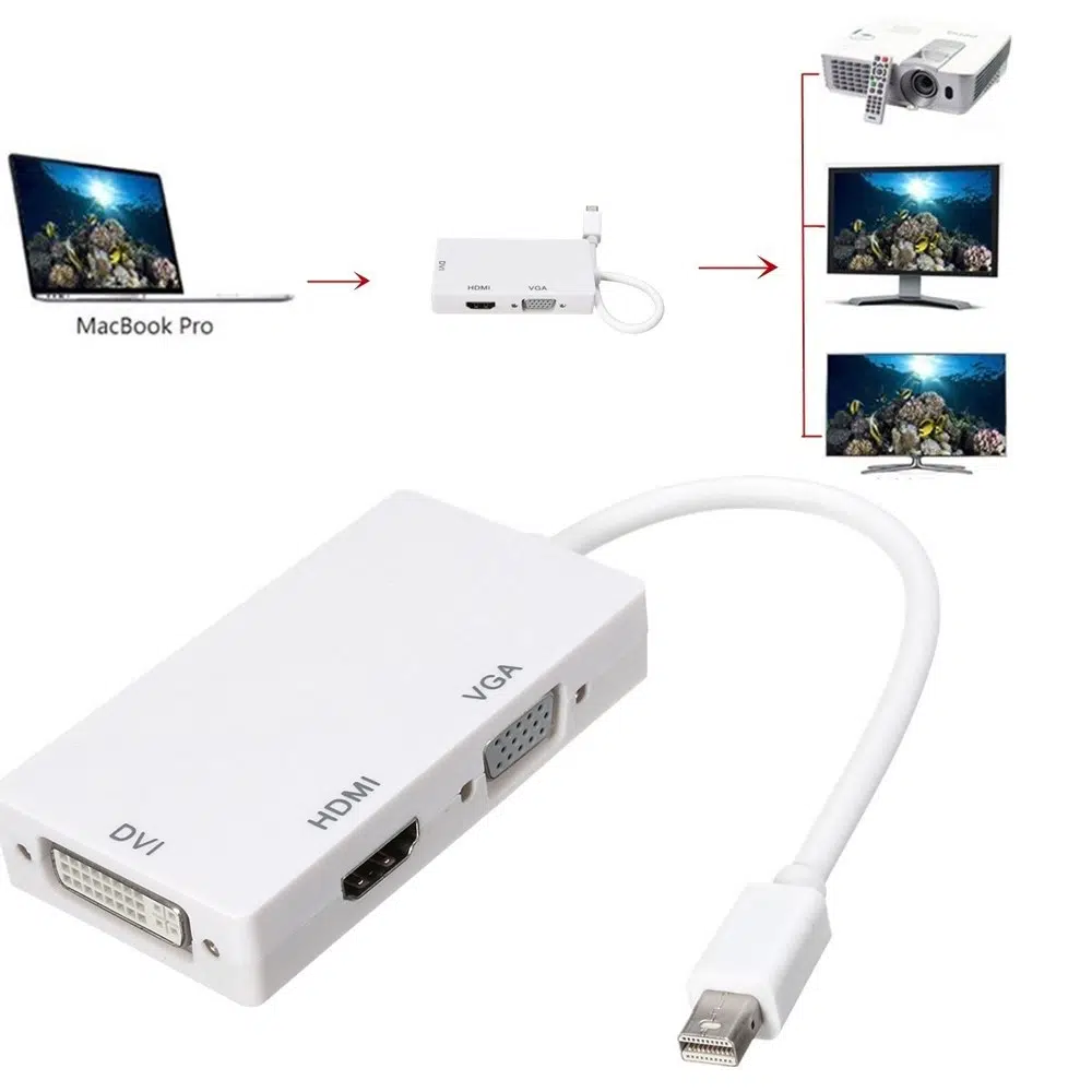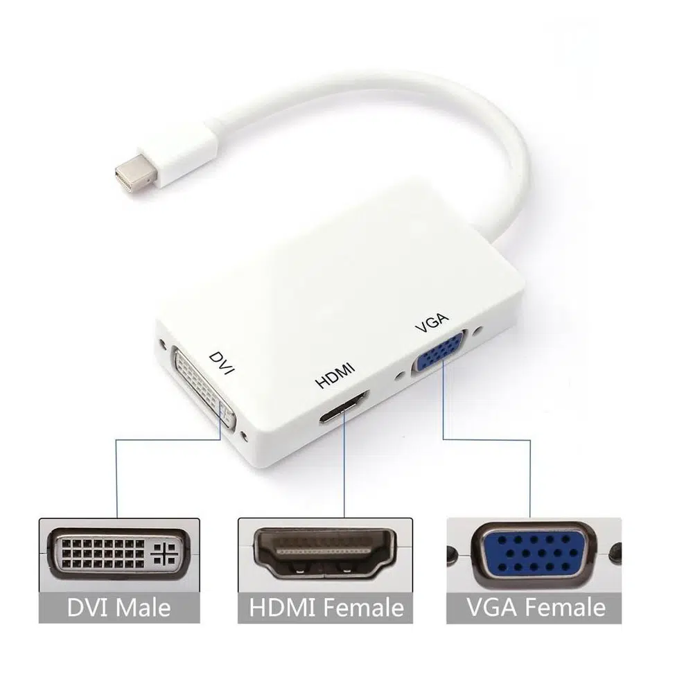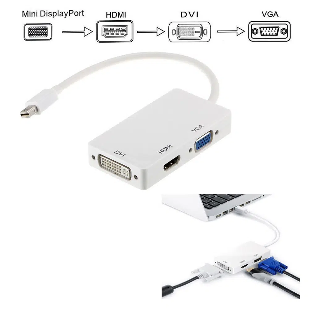 Mini DisplayPort to HDMI VGA DVI 3-in-1 Çevirici Adaptör | MacBook, iMac ve Mini DisplayPort Uyumlu