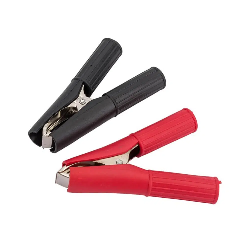 30A izoleli krokodil kıskaç seti, elektrik ve elektronik uygulamalarda hızlı, güvenli ve sağlam bağlantı sağlamak için tasarlanmış pratik bir bağlantı çözümüdür. Kırmızı (+) ve siyah (–) renk kodlaması sayesinde kutup karışıklığını önler, güvenli kullanım sunar.