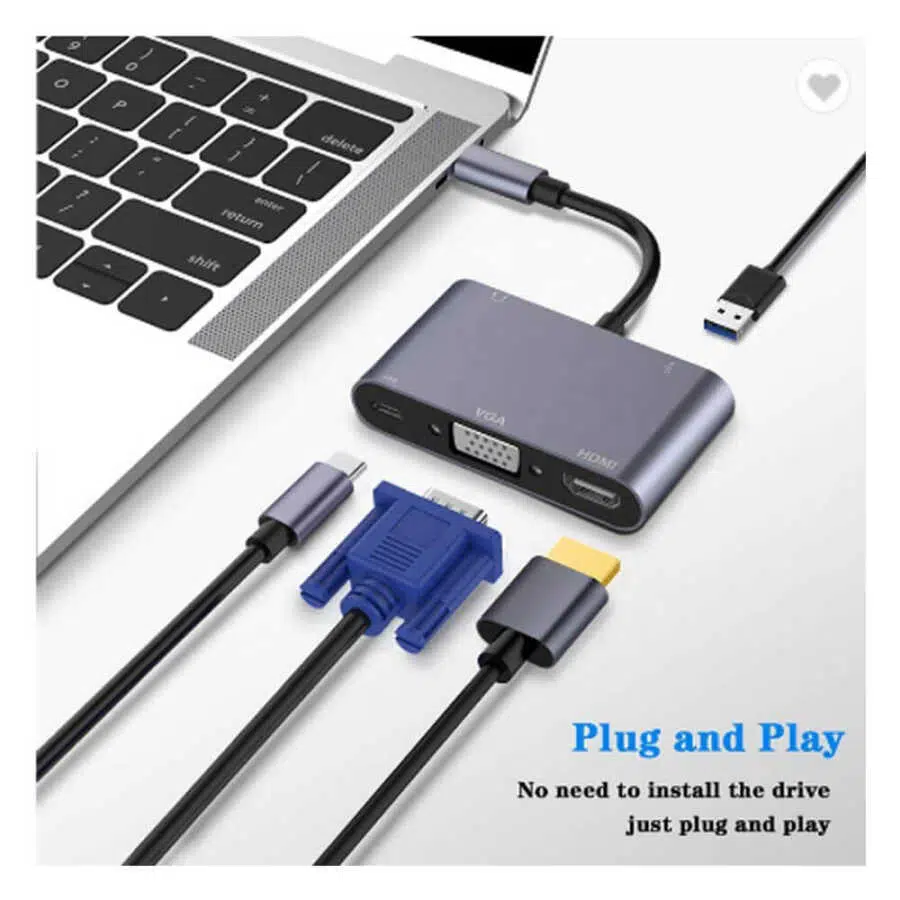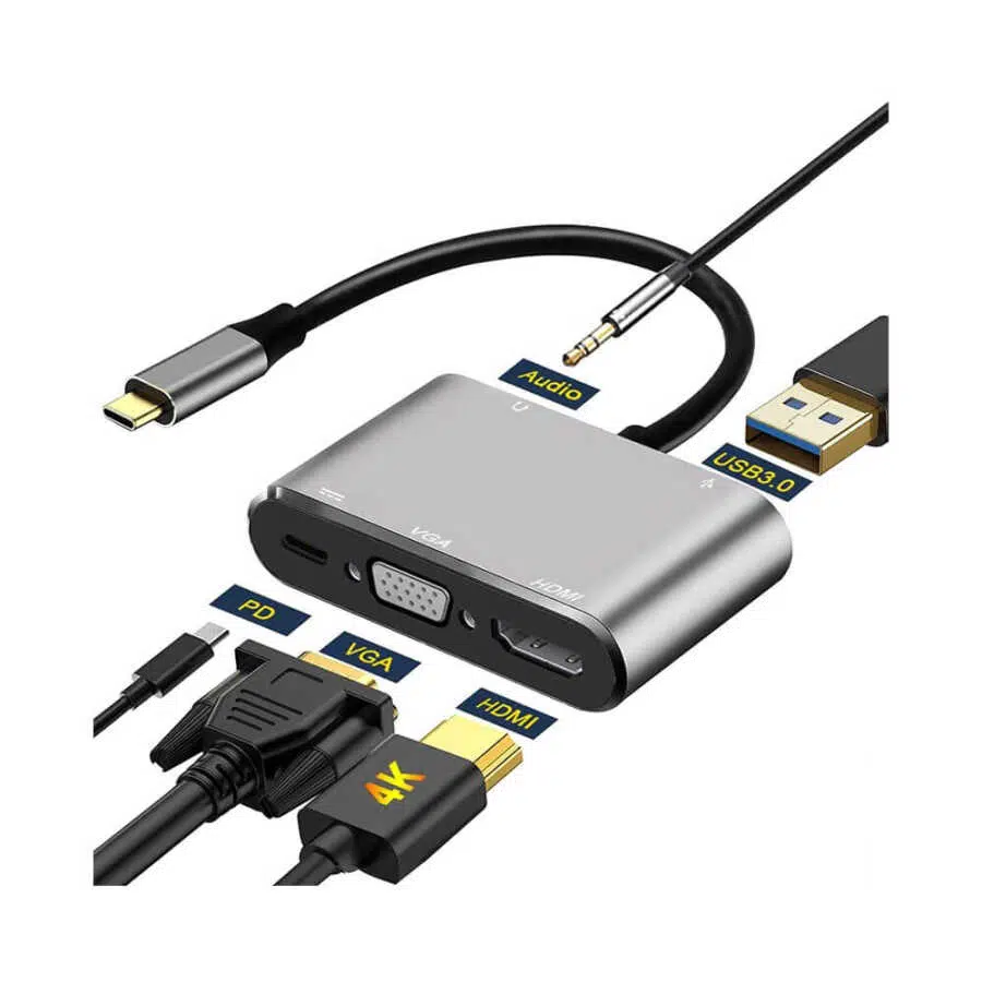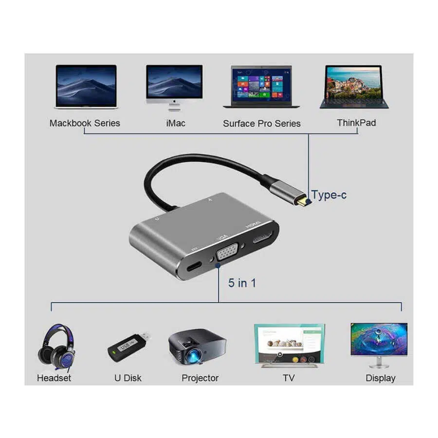 5 İn 1 Taşınabilir Mini USB-C - HDMI VGA Adaptörü 5'i 1 Arada Hub Size Daha Verimli Bir Deneyim Sunar!