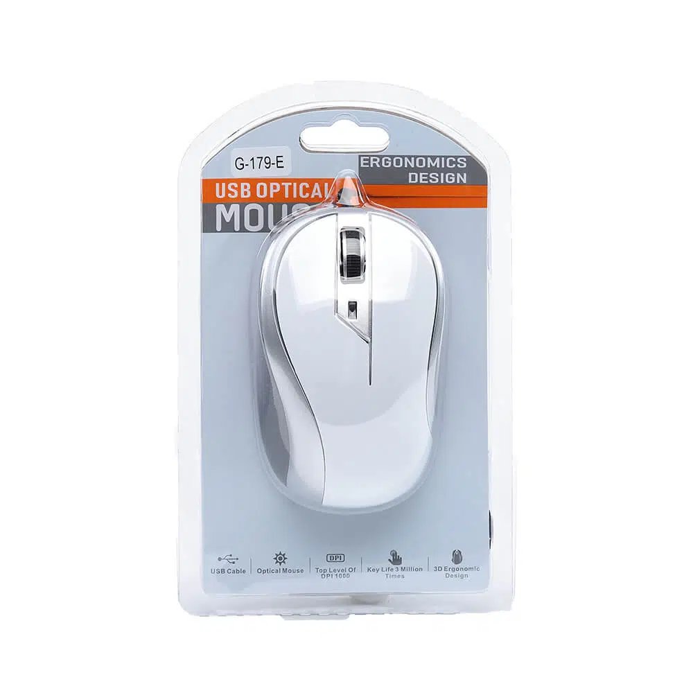 WOZLO Ergonomik USB Optik Kablolu Mouse 1000 DPI - Beyaz